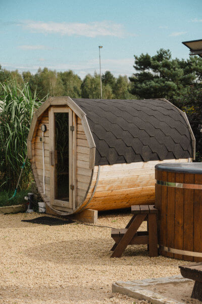 Zrelaksuj się w naszej saunie i jacuzzi z gorącą wodą. Odprężenie w otoczeniu natury, idealne na każdą porę roku.