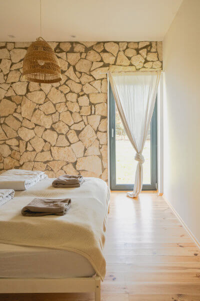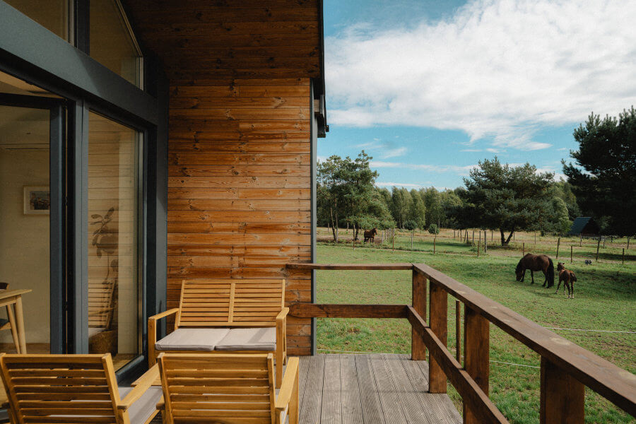 Texas i Floryda to dwa nowe domki w stylistyce nowoczesnych stodół z przeszkleniami na pastwiska z końmi. Co istotne na elewacji oraz ścianach wewnętrznych możecie zobaczyć znak rozpoznawalny Jury- kamień jurajski. Są dopełnieniem naszych starszych domków Utah i Arizona, które stoją w centralnej części rancza i są przewidziane dla doświadczonych jeźdźców oraz trzech przedszkolnych stodół z drewna; California, Nevada i Montana. Texas i Floryda są umiejscowione przy malowniczych pastwiskach zapewniając widok na łąkę, konie i las.